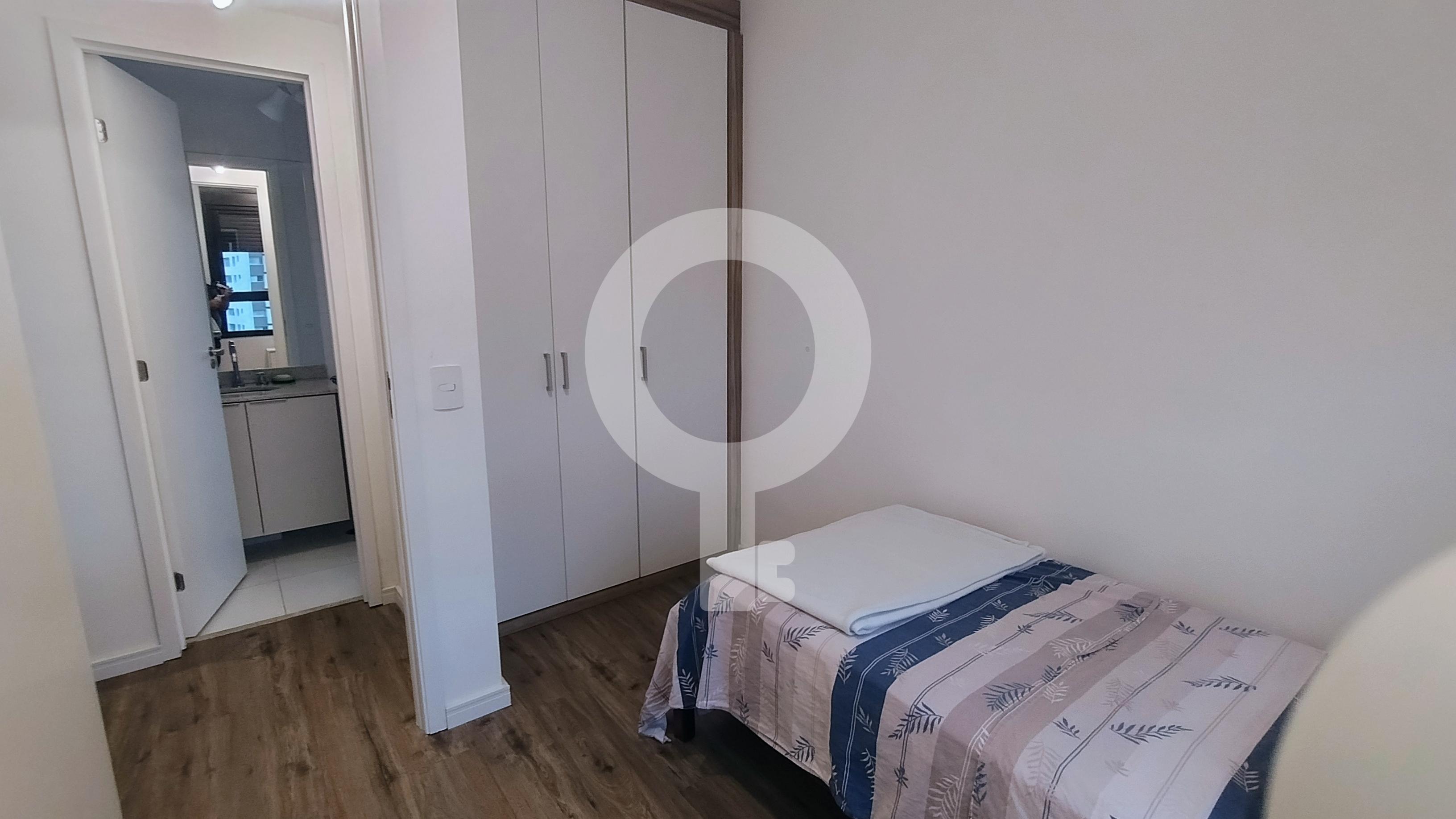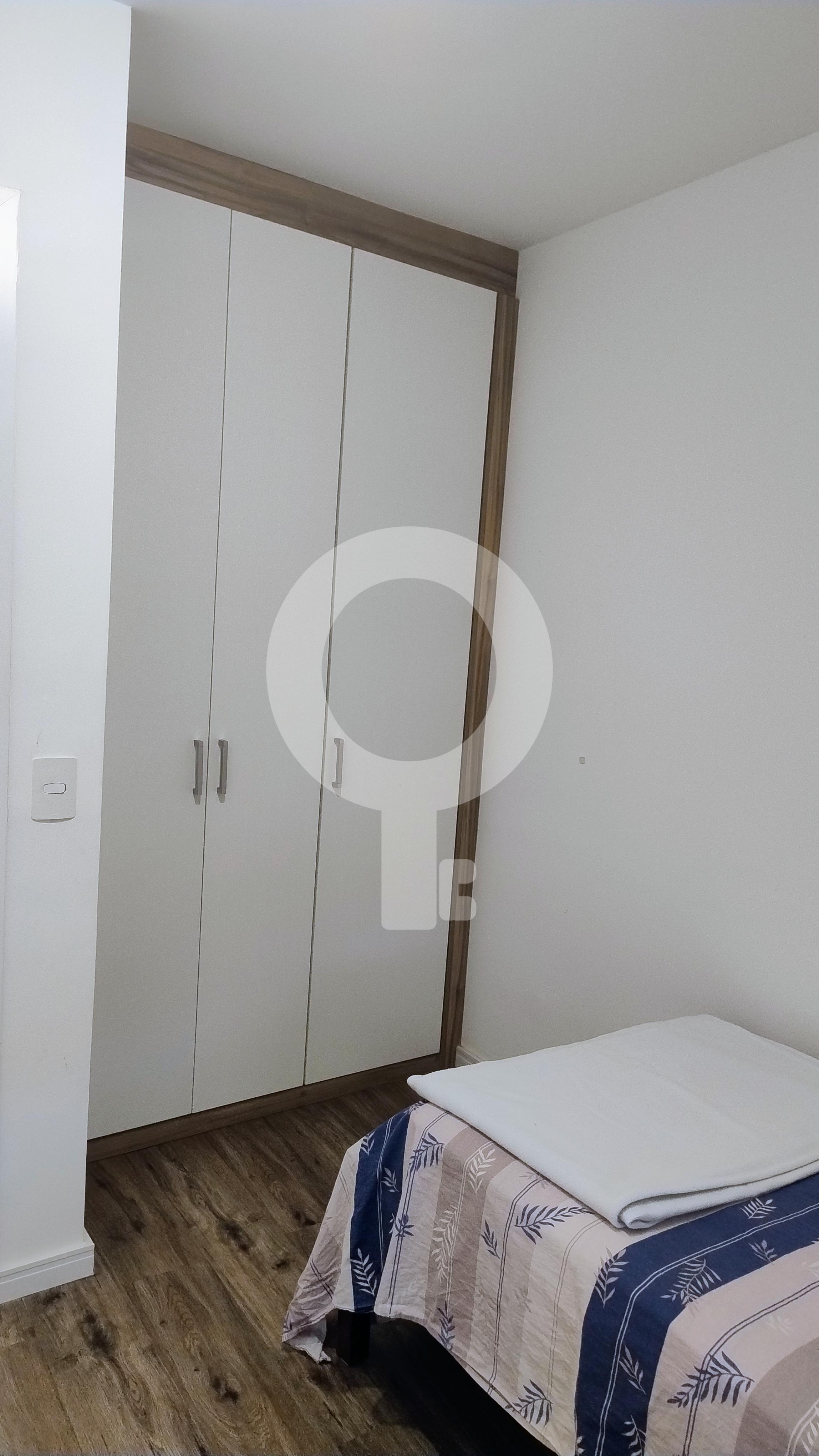 1 dormitório com cama e armário