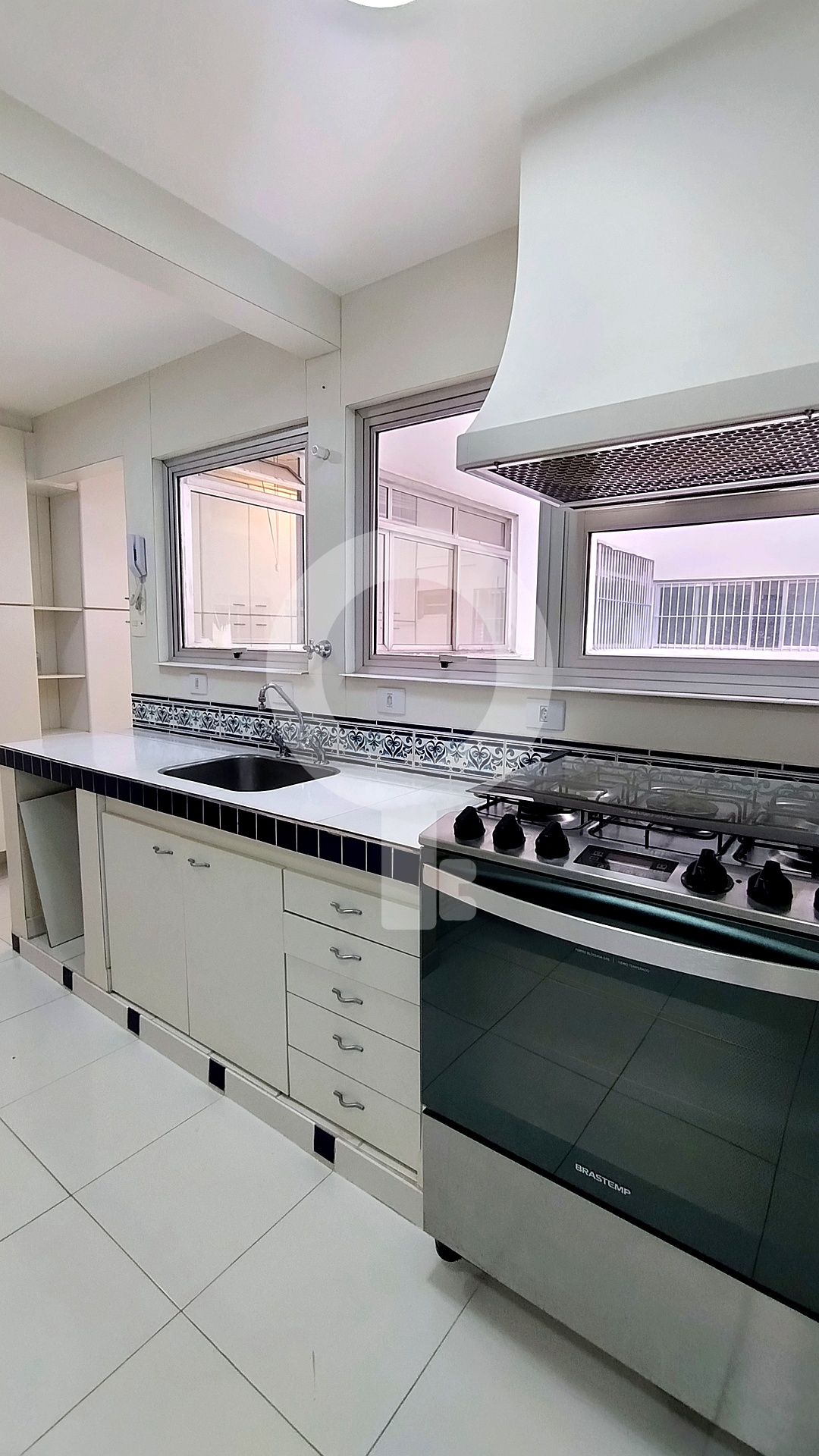O apartamento de 100 m², localizado no primeiro andar (equivalente ao segundo), tem a face norte, o que garante excelente iluminação natural e um ambiente silencioso.