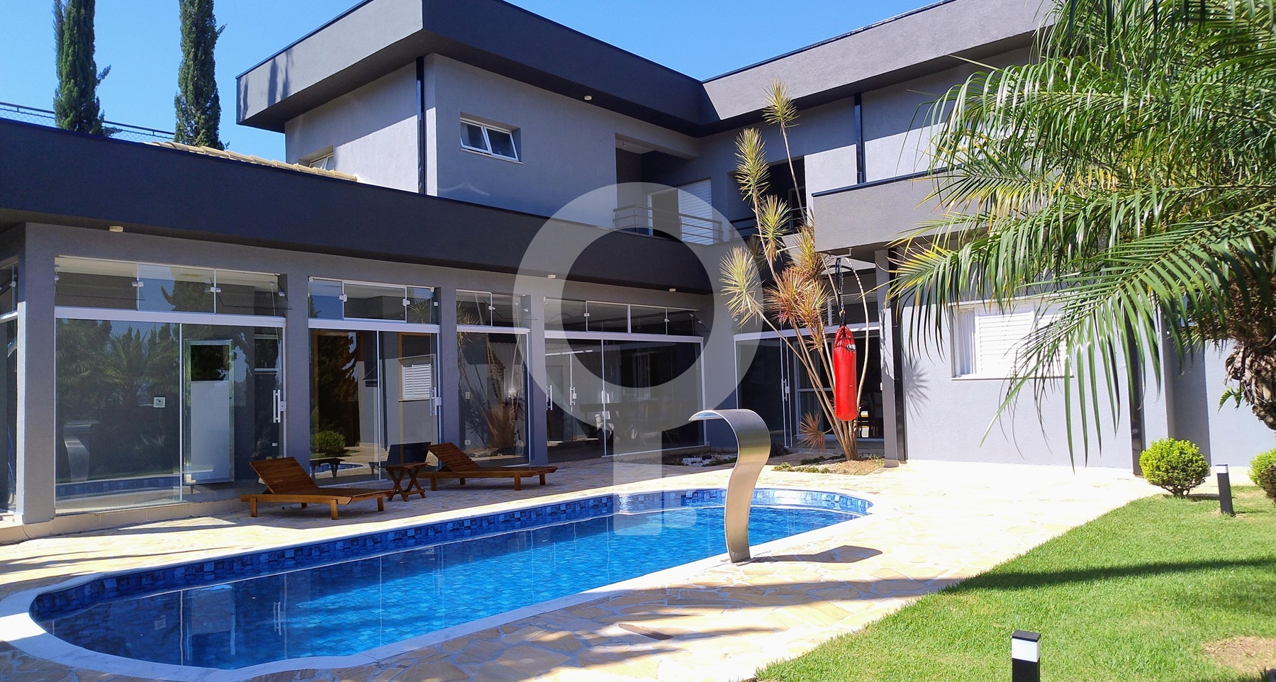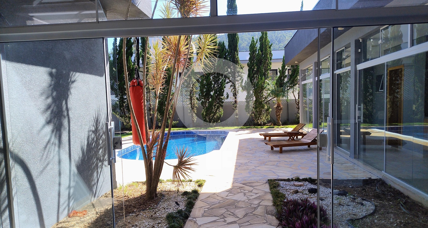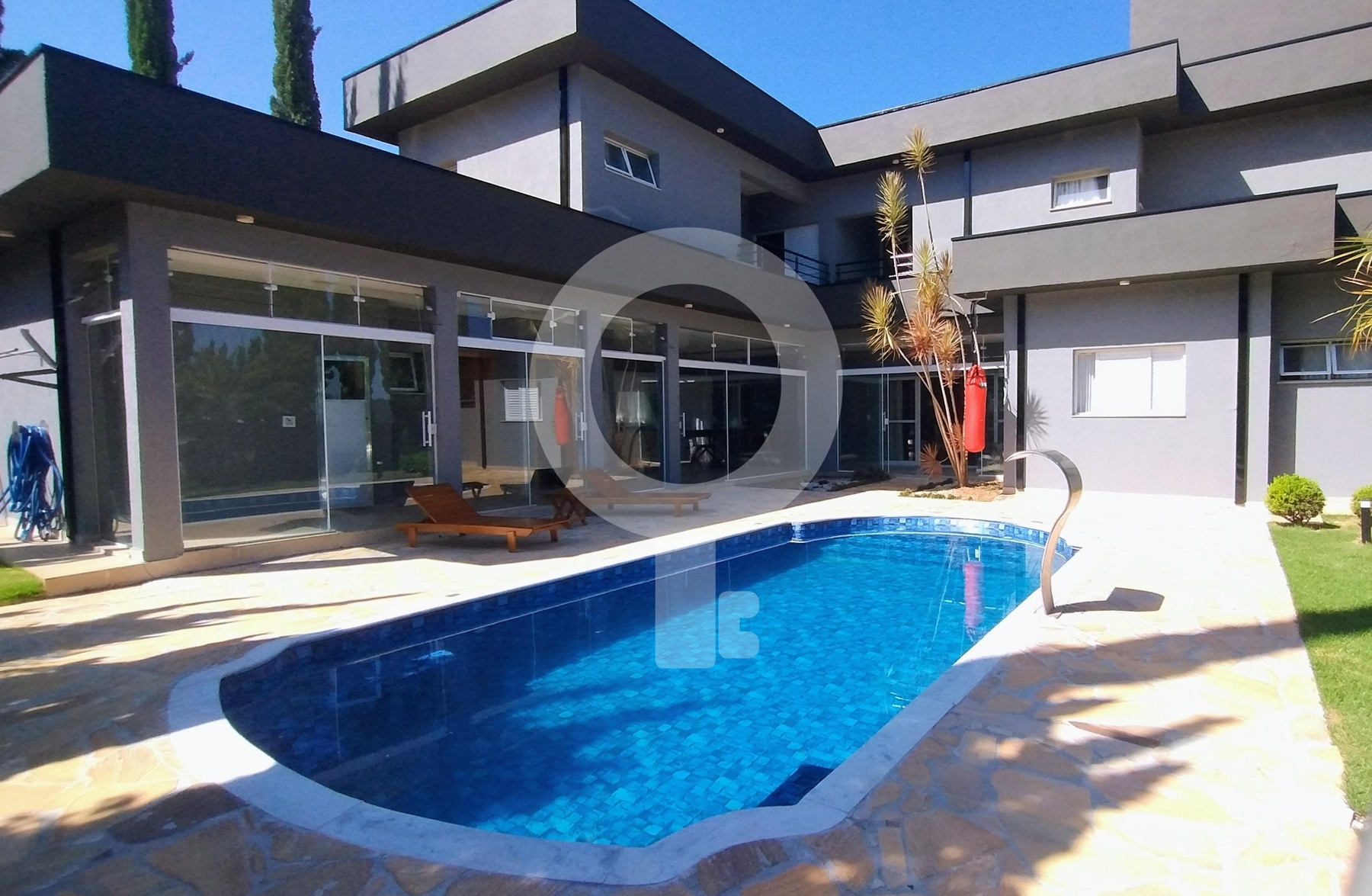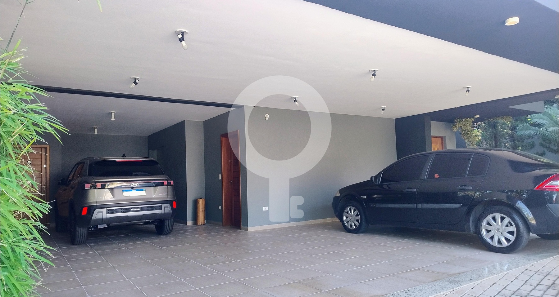 Garagem e Entrada Impecáveis: Com uma entrada imponente e porta pivotante, a casa oferece vaga para até 4 carros, garantindo total comodidade e segurança.